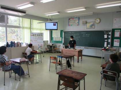 かがやき級 わくわくどきどきクイズ大会 公開日 2022/07/05 更新日 2022/07/05 かがやき級 「ようこそ草島小学校へ」の学習では、先生方にインタビューした内容をもとに三択クイズを作り、クイズ大会を開きました。「聞く・話す」のめあてをもち、取り組みました。
