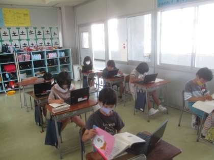 子供たちは、興味がある職業についてインターネットで調べ、メモをしっかりとりました。自分が興味のある職業ということもあり、子供たちの目はきらきらしていました。今後、この調べた職業のメモを生かし、仕事の工夫についてまとめていこうと考えています。