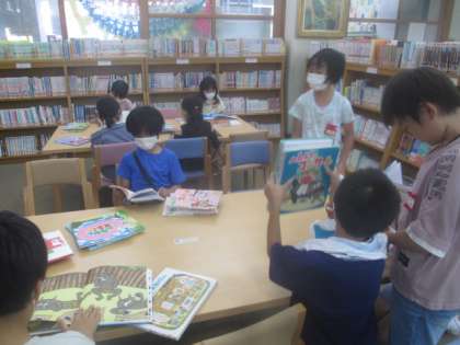 夏休み中に読む本を1人5冊借りに、図書室に行きました。