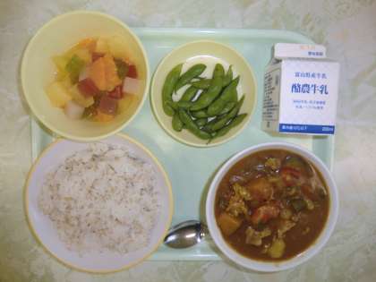 7月15日の給食 公開日 2022/07/15 更新日 2022/07/15 メール用カテゴリ 今日の給食は むぎごはん ぎゅうにゅう なつやさいカレー えだまめ フルーツカクテル です。 今日もおいしくいただきました。