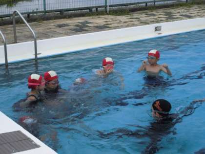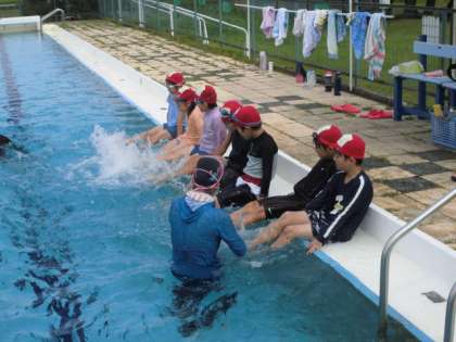 水泳教室では、3つのグループに分かれ、水泳の先生にそれぞれの力に合わせて教えていただきました。ビート板を使って25m泳げるようになった子や、鼻をつままなくても潜れるようになった子もいました。みんな、短時間で上達することができました。