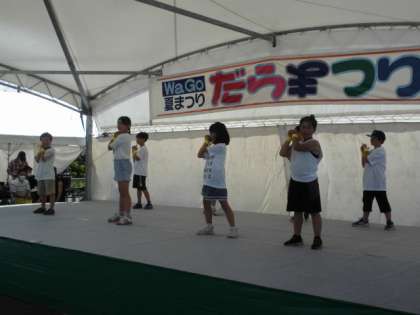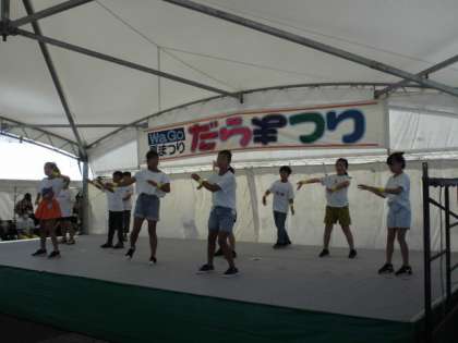 4年生 和合夏まつり「WaGo!だらまつり2022」 その1 公開日 2022/08/01 更新日 2022/08/01 4年生 7月31日(日)に、和合夏まつり「WaGo!だらまつり2022」にて、4年生がリズムダンスのステージ発表を行いました。子供たちは、今までの練習の成果を発揮し、元気よく踊っていました。