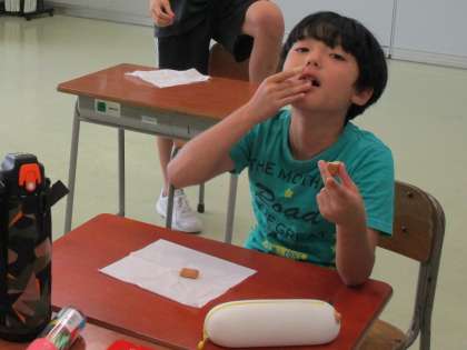 あおぞら級 シェイクアウト訓練をしました 公開日 2022/09/01 更新日 2022/09/01 あおぞら級 地震から身を守るために、「シェイクアウト」訓練を行いました。机の下に身を隠して頭を守る安全確保行動をとることができました。 訓練の後、備蓄品のカンパンを試食しました。非常時に食べる食料であることを意識し、大切に食べていました。