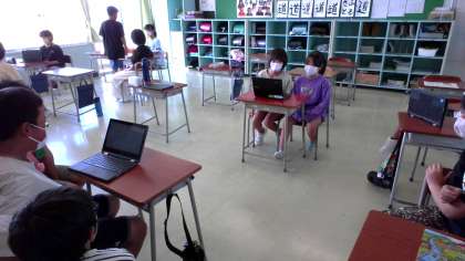 ペットに飼うならば犬をすすめる立場と猫をすすめる立場に分かれた話し合い活動を行いました。「犬は散歩を一緒にすることで健康な生活を送ることができる。加えて、散歩を通して、いろいろな風景を見たり、新しい発見をしたりできるという意見に納得できた」と結論付けていました。