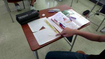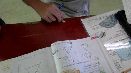 図形の角の大きさに着目し、図形の性質の理解を深めています。どんな三角形であっても角の和は180度になることや多角形の角が1つ増えると、角の和が180度増えるということなど、友達と話し合いながら理解を深めています。