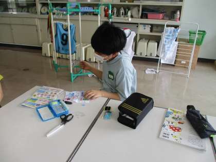 かがやき級 裁縫に挑戦2 公開日 2022/09/07 更新日 2022/09/07 かがやき級 家庭科では、ボタン付けやフェルトの作品作りをしました。「針に糸を通すことが一番難しい」と言いながらも、頑張って取り組んでいます。