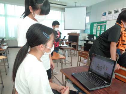 6年生 外国語科「友達と夏休みの思い出を話そう」 公開日 2022/09/15 更新日 2022/09/15 6年生 先週作ったスライドを使いながら、夏休みの思い出を英語で質問したり、答えたりしました。