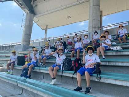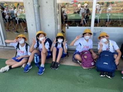 昼食、競技の待ち時間の様子です。日陰になっている涼しい場所で静かに過ごしていました。学校に帰ってきてからは「楽しかったー!」という声が聞こえてきました。どの子にとっても全力でがんばって充実した1日になりました。