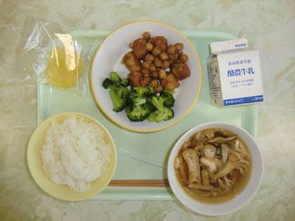 9月22日の給食 公開日 2022/09/22 更新日 2022/09/22 メール用カテゴリ 今日の給食は、 ごはん ぎゅうにゅう さかなとひよこまめのあまからめ ゆでブロッコリー さわにわん れいとうりんご です。 今日もおいしくいただきました。