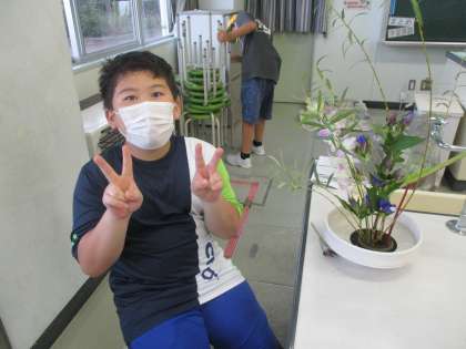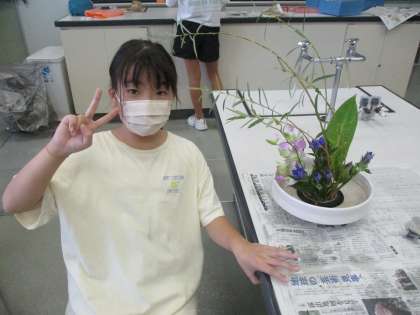 生け花クラブの活動の様子です。子供たちは、講師の先生から教わった大事なポイントを意識しながら、真剣に花を生けていました。
