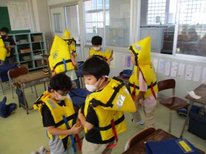 2年生 ライフジャケットの着用練習