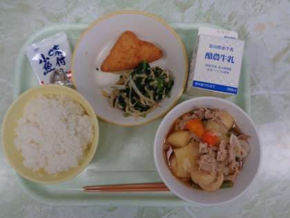 10月5日の給食 公開日 2022/10/05 更新日 2022/10/05 メール用カテゴリ 今日の給食は、 ごはん ぎゅうにゅう はんぺんフライ はりはりあえ にくじゃが あじつけこざかな です。 今日もおいしくいただきました。