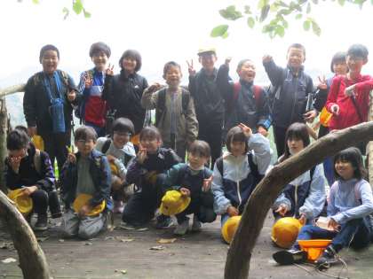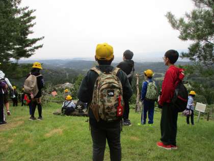 子どもの村からは、富山市を一望できました。海際にある火力発電所を目印に、「草島小学校はあの辺だな」と話していました。