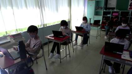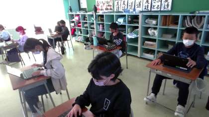 食料自給率の数値についてグラフを基に話し合い、学習問題を作って調べ学習を進めています。食料自給率と国土の大きさを関連付けたり、機械化されている国が自給率が高いと結論付けたりと、調べたことを生かして考えているようです。