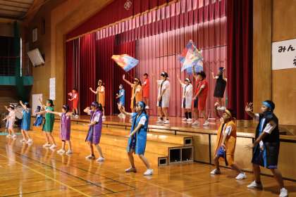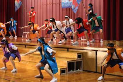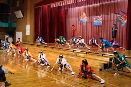 最後はみんなでソーラン節を披露しました。初めの頃は1回踊るだけでも、身体が痛いと言っていましたが、本番が近づくにつれ腰も低く下がり、動きが揃うようになりました。練習の成果を存分に発揮できました。