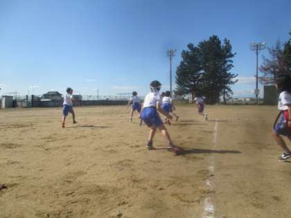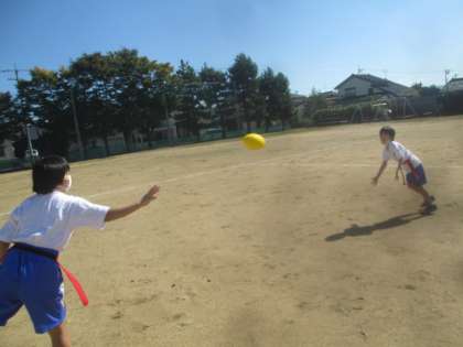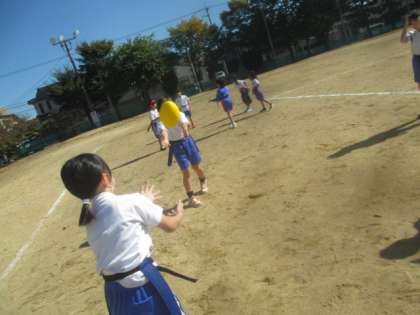 今日は、グラウンドでタグラグビーをしました。ボールをパスする練習とボールを使わずゴールを目指す練習をしました。他の友達の動きを参考にしたり、班で作戦を考えたりして学習を進めることができました。