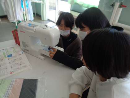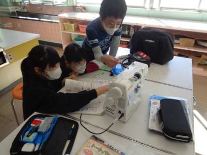 6年生 家庭科「トートバッグ作り」 公開日 2022/10/31 更新日 2022/10/31 6年生 いよいよミシンの作業に入りました。5年生のときを思い出しながら一生懸命に上糸や下糸をかけています。完成が楽しみです。
