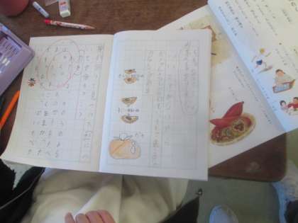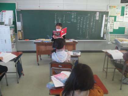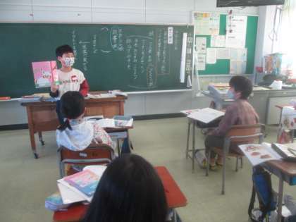 秋に関する言葉を使い、文章を書きました。また、書いた文章を友達の前で発表することができました。