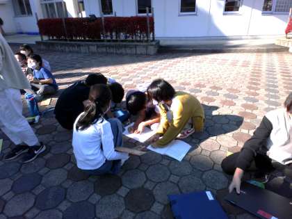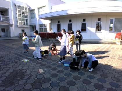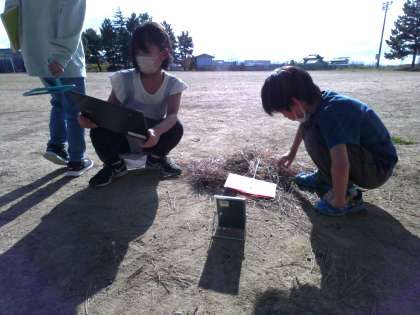 鏡を使い、「太陽の光を反射したらどう進むのか、そして、はね返った光は暖かいのか」について実験しました。日光の当たり具合を調節しながら実験をすることができました。事前の予想と違うことが起き、驚いている子供たちが印象的でした。