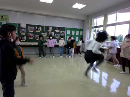 3年生は、長縄を使い、2分間に何回飛ぶことができるかという記録に挑戦しました。今回の記録は、45回でした。次は50回を達成できるよう練習していきます。