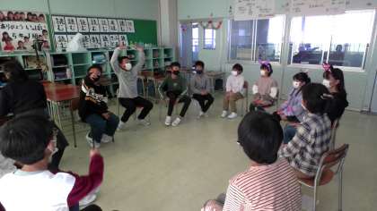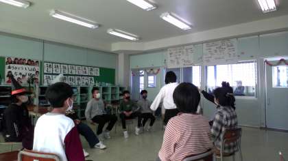 宿泊学習、学習発表会、就学時健康診断等、学校行事で忙しく過ごしていた中、学級の友達と楽しい時間を過ごしたいと係が中心となって集会を計画しました。少し日は経ちましたが、仮装をしながら「ハロウィンゲーム」「ゾンビは誰だゲーム」などで楽しみました。