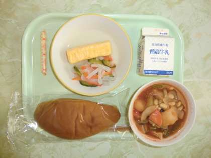 11月8日の給食 公開日 2022/11/08 更新日 2022/11/08 メール用カテゴリ 今日の給食は こくとうコッペパン ぎゅうにゅう たまごロール だいこんサラダ ポークビーンズ ぼうチーズ です。 今日もおいしくいただきました。