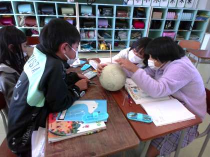 様々な大きさの球の半径を求めることに挑戦しました。円とは違うこともあり苦戦していましたが、班で工夫しながら調べることができました。