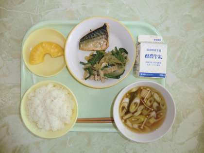 11月10日の給食 公開日 2022/11/10 更新日 2022/11/10 メール用カテゴリ 今日の給食は ごはん ぎゅうにゅう さばのしおやき しらたきのピリからいため しらたまじる パインアップル です。 今日もおいしくいただきました。