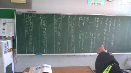 5年生 書写の学習を進めています 公開日 2022/11/15 更新日 2022/11/15 5年生 グループで協力して、「竹取物語」の一節を黒板に書きました。学習したことを生かしている様子が見られました。