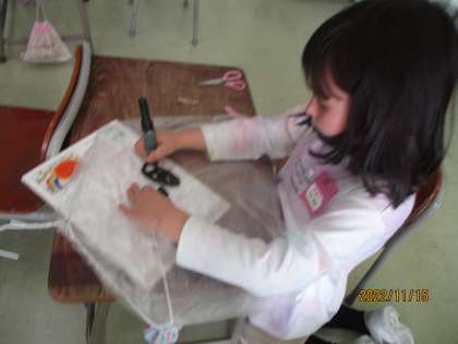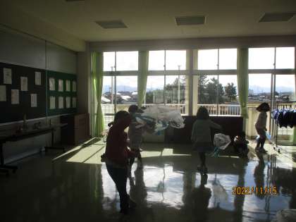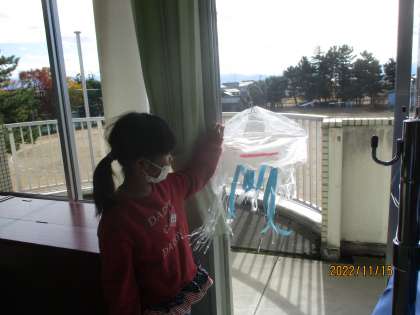 1年生 図画工作科「ひらひらゆれて」 公開日 2022/11/15 更新日 2022/11/15 1年生 風に当たると、ひもやリボンがひらひらとゆれる飾りを作りました。ナイロンテープや紙テープがちゃんと風に乗るかを確かめながら作っていました。できた飾りを持って走ると、きれいな飾りがなびいて、より楽しくなってきました。