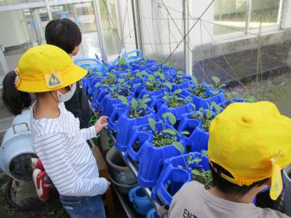 2年生 生活科の学習より 公開日 2022/11/18 更新日 2022/11/18 2年生 秋植えの野菜としてキャベツ作りに取り組んでいます。 来年度3年生の理科の学習で、モンシロチョウが卵を産み付けてくれるように、立派なキャベツにしたいとがんばっています。小さな種からここまで育っていることを、うれしく思う2年生です。