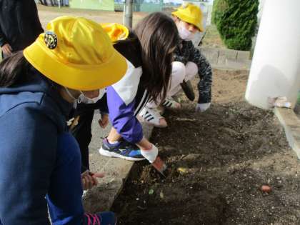 4年生 チューリップの球根を植えました 公開日 2022/11/18 更新日 2022/11/18 4年生 花壇の整備をした後、チューリップの球根を植えました。子供たちは、友達と協力しながら活動しました。