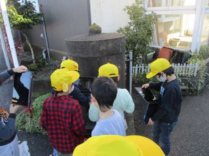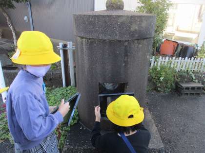 今回は、金山新・桜ヶ丘方面を探検しました。元気いっぱいに出発の挨拶をした後、まずは、金山新にあるお地蔵さんを見に行きました。