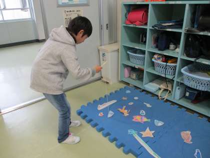 クレーンゲームや魚釣り、射的など、すてきな遊びが作られていました。子供たちは友達の遊び方の説明をよく聞いて遊んでいました。