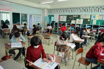 学期末になり、学習のまとめとしてテストをしています。 子供たちは、集中して取り組んでいます。