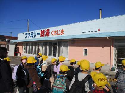 次は、草島ファミリー銭湯の見学に向かいました。開店前の貴重な時間に見学をさせていただき、特別に中に入って、お風呂の紹介をしてくださいました。