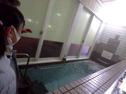 「アロエのお風呂があるんだね」「男風呂の露天風呂が気持ちよさそうだな」と、友達と感想を伝え合いながら、見学を楽しんでいました。