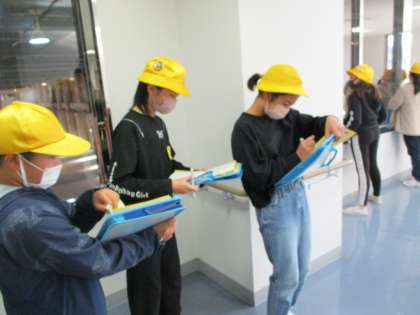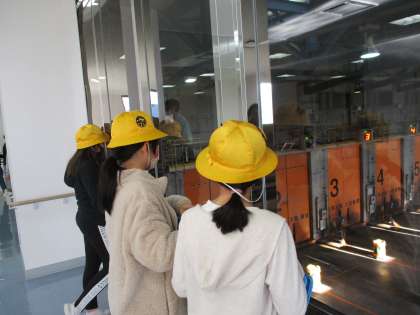 最初は、富山地区広域圏クリーンセンターを見学しました。子供たちは、ゴミピットや焼却炉の様子を見学し、メモを取っていました。説明を聞いて気になったことは、クリーンセンターの方に、積極的に質問していました。