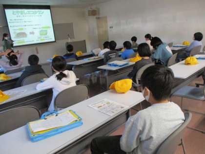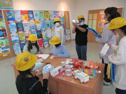 次に、富山市エコタウン交流推進センターを見学しました。エコタウンでは、リサイクルについて学んだり、身近なものを再利用して作ったエコおもちゃで遊んだりしました。