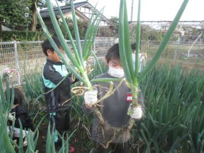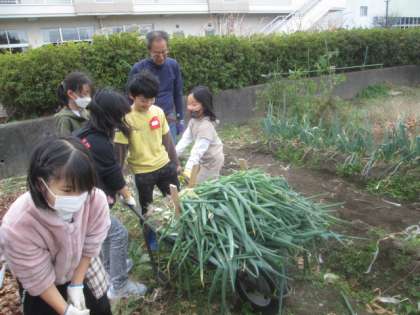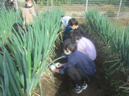 6月に植えたねぎの収穫を行いました。植えたときよりも太く、大きくなっているねぎを丁寧に掘り起こしていました。