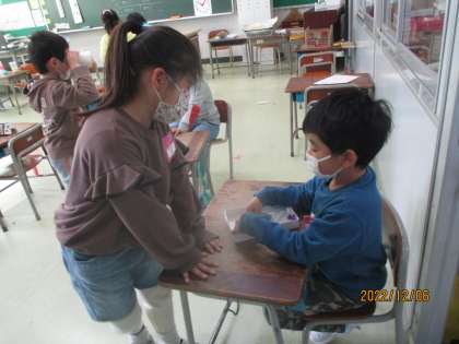1年生 生活科の「みんなでたのしもう」 公開日 2022/12/09 更新日 2022/12/09 1年生 どんぐりやまつぼっくりなどの身近な自然の材料を使っておもちゃをつくり、みんなで遊びました。友達のお店を訪問して、遊び方を教えてもらいながら、楽しく遊びました。友達のお店からヒントを得て、もっと工夫しようというアイディアが浮かび、さらに工夫しようという意欲を高めました。