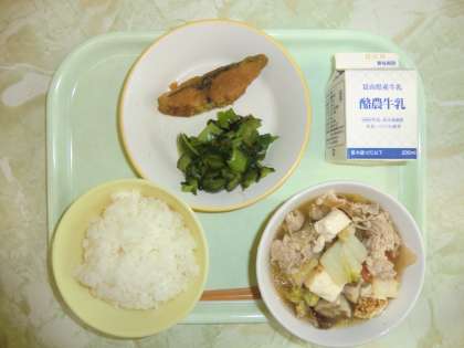 12月14日の給食 公開日 2022/12/14 更新日 2022/12/14 メール用カテゴリ 今日の給食は ごはん ぎゅうにゅう ふくらぎのみぞれがけ とろろこんぶあえ はくさいなべ です。 今日もおいしくいただきました。