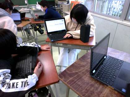 6年生 算数科「データの活用」 公開日 2022/12/16 更新日 2022/12/16 6年生 自分たちの1秒間あたりのタイピングの速さのデータを使って、データの活用の勉強をしました。ドットプロットや度数分布表、ヒストグラムで表し、そこから読み取ることのできる情報を班で話し合っています。