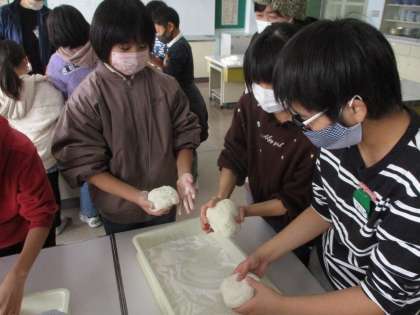 5年生 鏡餅を作りました 公開日 2022/12/20 更新日 2022/12/20 5年生 餅つき大会でついたお餅を5年生が代表して鏡餅に仕立てました。餅が手にくっつき、思うように形作れないと四苦八苦していました。なんとか作った一組の鏡餅は、各教室に飾ります。