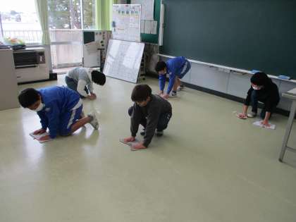 かがやき級 大掃除 公開日 2022/12/21 更新日 2022/12/21 かがやき級 2学期末に大掃除をしました。床の水拭きをして、しっかりと汚れを落とすことができました。みんなで協力して掃除をしていると、あっという間に時間が経っていました。