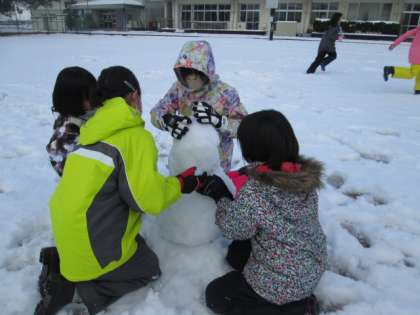 今週は、今年最初の積雪がありました。4年生は、元気に雪遊びをしました。