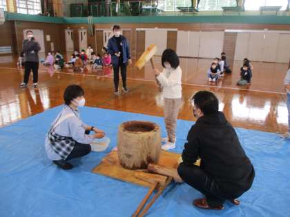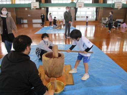 2年生 12/20 もちつき体験 公開日 2022/12/23 更新日 2022/12/23 2年生 12月20日にもちつき体験がありました。 「去年もやったね」「もち米のいいにおいがするね」と、開始前からにこにこ嬉しそうな2年生。どの子も、お世話をしてくださったPTAの方のかけ声に合わせて、楽しくもちつきができました。教室に鏡餅として届いたものを大切に飾りたいと思います。