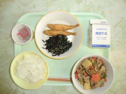 1月11日の給食 公開日 2023/01/11 更新日 2023/01/11 メール用カテゴリ 今日から3学期の給食です。 今日の給食は、 ごはん ぎゅうにゅう わかさぎのフリッター ひじきのごまあえ ぶたにくのなんばんに なっとう です。 今日もおいしくいただきました。