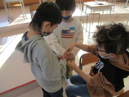 「ずいずいずっころばし」「なべなべそこぬけ」「あんたがたどこさ」を、歌ったり、手遊びをしたりしました。