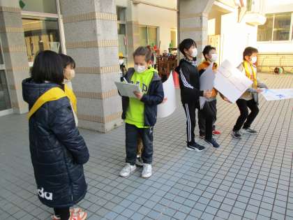今日は、5・6年生がスキー教室のため、4年生が草島小学校の最高学年として学校全体の仕事に取り組みました。朝は、あいさつ運動や、シャボネットの補充、放送をしました。